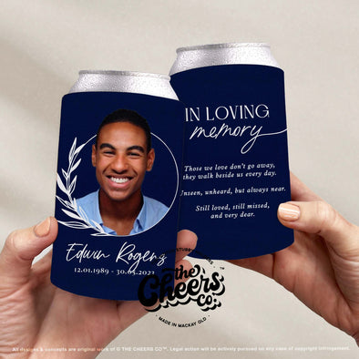 In Loving Memory, Funeral, Memorial, Celebration of Life Stubby Holders - Customised to Commemorate Your Loved One