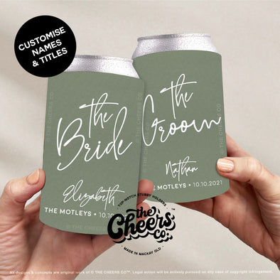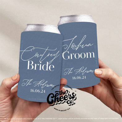 Bride & Groom Wedding Set of Personalised Stubby Holders (Set of 2)